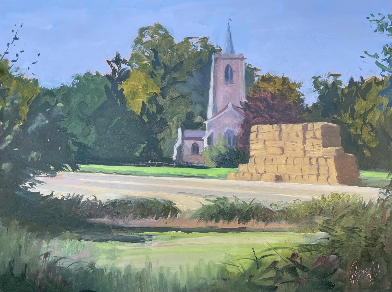 How excited I was to find two of my favourite subjects side by side. I lost track of time and spent considerably longer than intended. It was a beautiful day at the end of a gorgeous Summer. The bushes in the foreground were laden with blackberries. Painted end August 2025, in five hours.